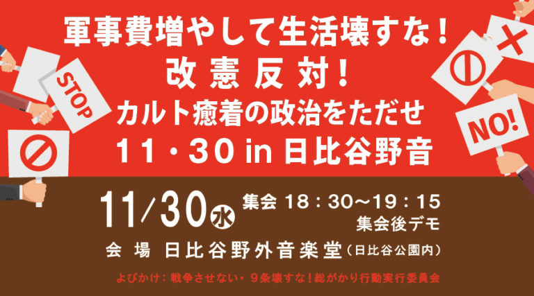 『軍事費増やして生活壊すな!改憲反対!カルト癒着の政治をただせ、11・30in日比谷野音』( #1130日比谷野音 )