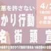 運営:この行動は一般市民に参加を呼びかけるものであり、みなさんが安心して参加できるよう、相互に協力する。この行動は非暴力の行動で、参加者を誹謗中傷しない、全体の運営は実行委員会の指示に協力する、などを原則とします。