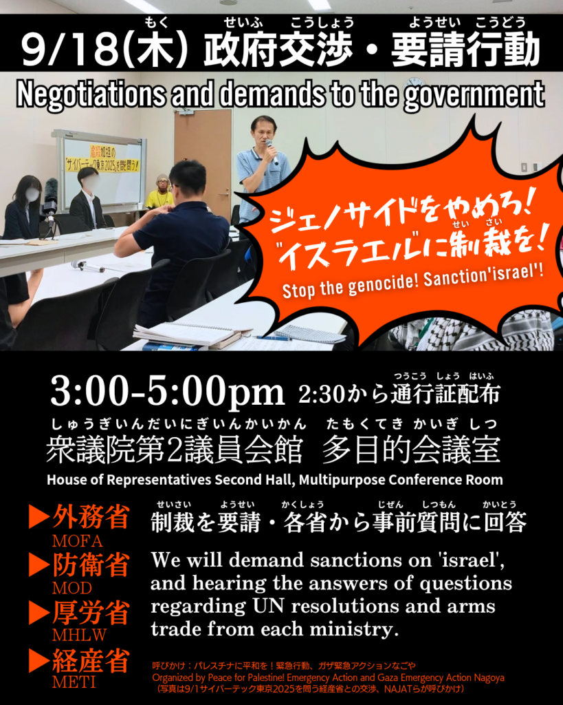 『ジェノサイドをやめろ! #イスラエルに制裁を !9.18政府交渉&要請行動』( #パレスチナに平和を緊急行動 )