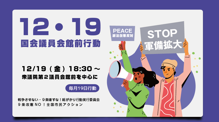 『戦争煽るな!高市発言今すぐ撤回!憲法いかして東北アジアと連帯しよう!12・19国会議員会館前行動』( #1219議員会館前行動 #19日行動 #スパイ防止法は現代の治安維持法 )